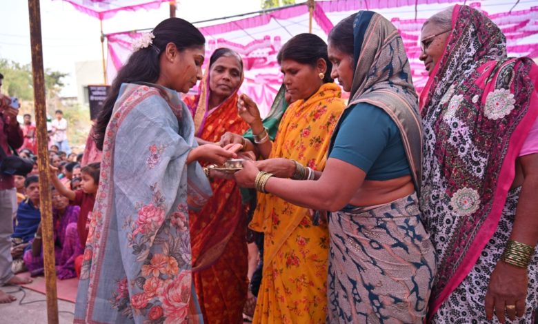 अपशकुनाच्या परंपरांना मोडीत काढत समाजपरिवर्तनाचा आदर्श विधवा महिलांनी ॲड. माधुरी पवार यांना लावले हळदी-कुंकू मेहकर…